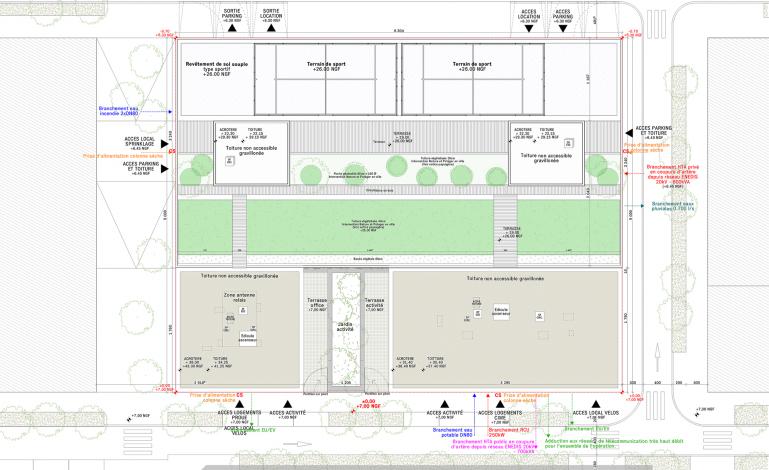 L'ensemble propose des logements de 2 à 5 pièces avec loggia et place de stationnement. Des espaces partagés (salle de fitness, jardins, atelier de bricolage, terrains de Padel sur le toit...) sont réservés à l'usage exclusif des résidents.
